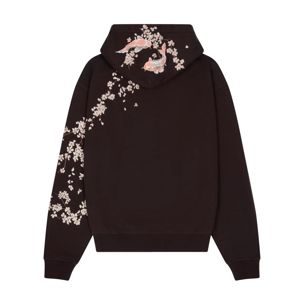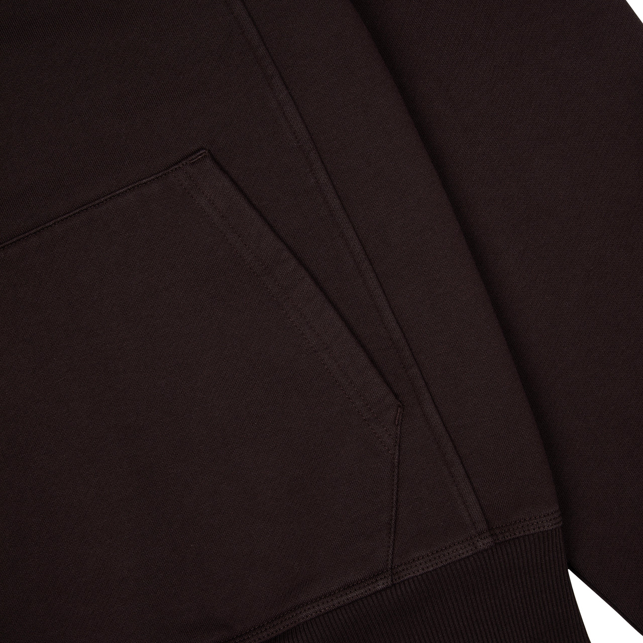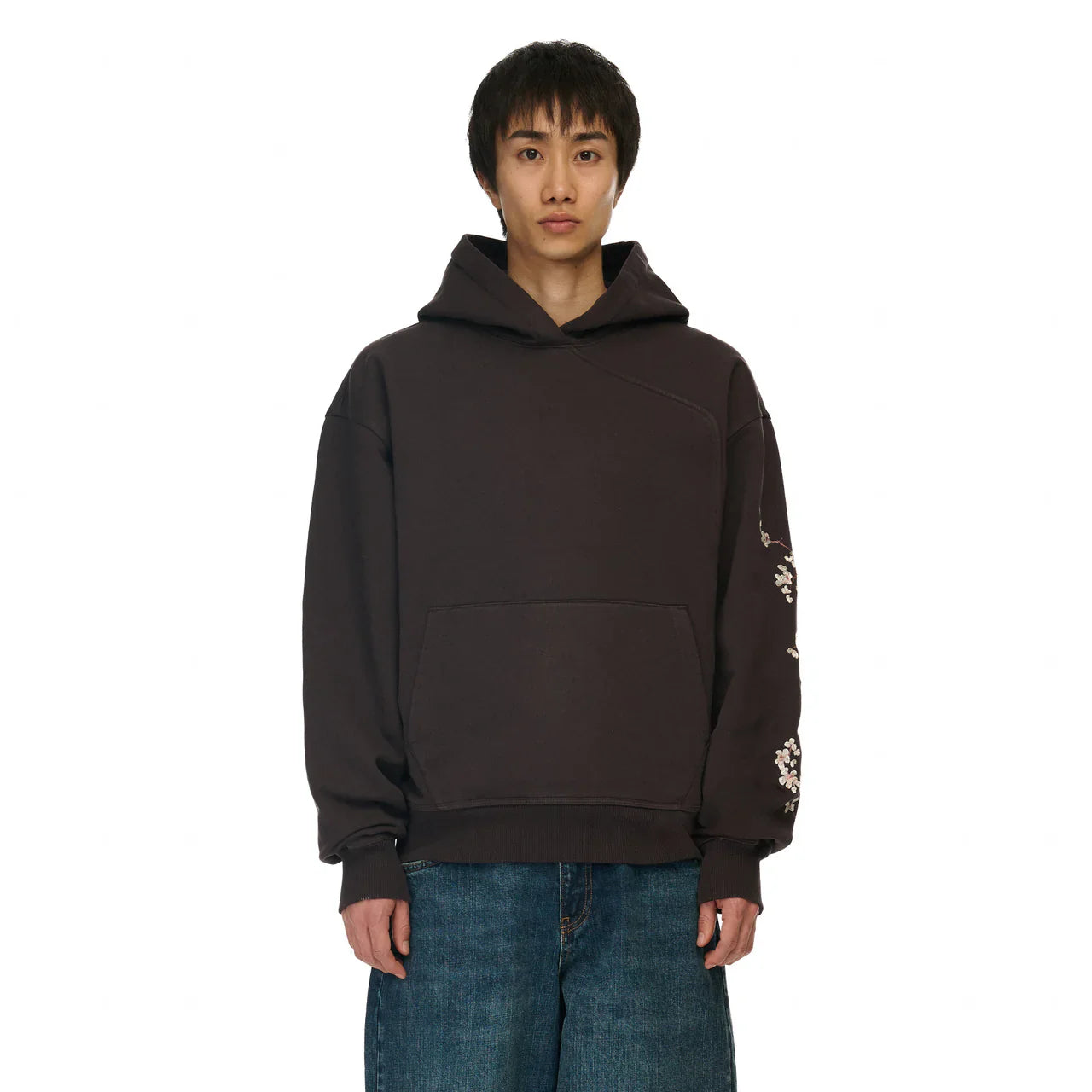 Coton brossé 460 g / 100 % coton pré-rétréci / Broderie dans le dos, sur la manche et la capuche / Couture avant style piping / Taille conforme